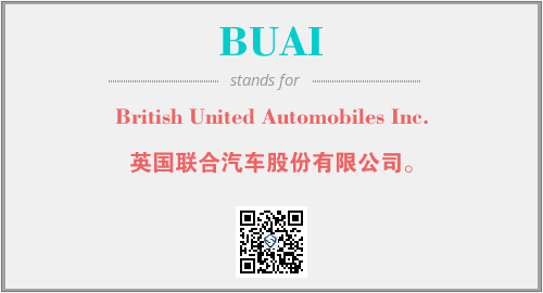 上述内容是“British United Automobiles Inc.”作为“BUAI”的缩写,解释为“英国联合汽车股份有限公司。”时的信息,以及英文缩略词BUAI所代表的英文单词,其对应的中文拼音、详细解释以及在英文中的流行度和相关分类、应用领域及应用示例等。