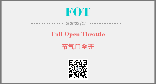 上述内容是“Full Open Throttle”作为“FOT”的缩写,解释为“节气门全开”时的信息,以及英文缩略词FOT所代表的英文单词,其对应的中文拼音、详细解释以及在英文中的流行度和相关分类、应用领域及应用示例等。
