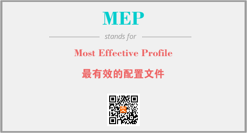 英文缩略词“MEP”经常作为“Most Effective Profile”的英文缩写来使用,中文表示:“最有效的配置文件”。本文将详细介绍英文缩写词MEP所代表英文单词,其对应的中文拼音、详细解释以及在英语中的流行度。此外,还有关于缩略词MEP的分类、应用领域及相关应用示例等。