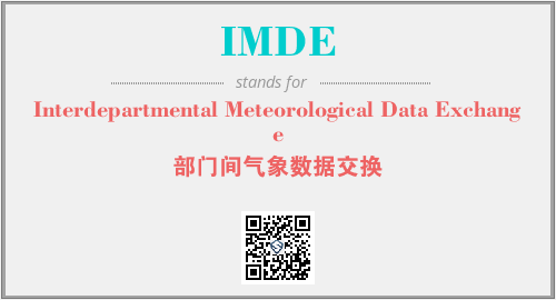 上述内容是“Interdepartmental Meteorological Data Exchange”作为“IMDE”的缩写,解释为“部门间气象数据交换”时的信息,以及英文缩略词IMDE所代表的英文单词,其对应的中文拼音、详细解释以及在英文中的流行度和相关分类、应用领域及应用示例等。