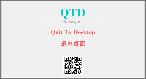 英文缩略词“QTD”经常作为“Quit To Desktop”的英文缩写来使用,中文表示:“退出桌面”。本文将详细介绍英文缩写词QTD所代表英文单词,其对应的中文拼音、详细解释以及在英语中的流行度。此外,还有关于缩略词QTD的分类、应用领域及相关应用示例等。