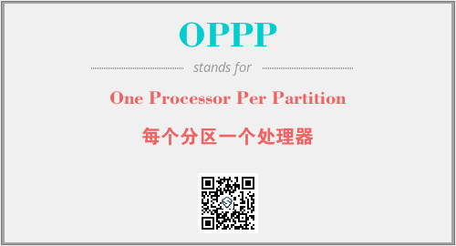 上述内容是“One Processor Per Partition”作为“OPPP”的缩写,解释为“每个分区一个处理器”时的信息,以及英文缩略词OPPP所代表的英文单词,其对应的中文拼音、详细解释以及在英文中的流行度和相关分类、应用领域及应用示例等。
