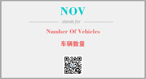 上述内容是“Number Of Vehicles”作为“NOV”的缩写,解释为“车辆数量”时的信息,以及英文缩略词NOV所代表的英文单词,其对应的中文拼音、详细解释以及在英文中的流行度和相关分类、应用领域及应用示例等。