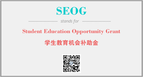 英文缩略词“SEOG”经常作为“Student Education Opportunity Grant”的英文缩写来使用,中文表示:“学生教育机会补助金”。本文将详细介绍英文缩写词SEOG所代表英文单词,其对应的中文拼音、详细解释以及在英语中的流行度。此外,还有关于缩略词SEOG的分类、应用领域及相关应用示例等。
