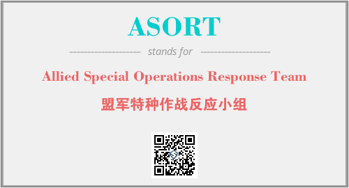英文缩略词“ASORT”经常作为“Allied Special Operations Response Team”的英文缩写来使用,中文表示:“盟军特种作战反应小组”。本文将详细介绍英文缩写词ASORT所代表英文单词,其对应的中文拼音、详细解释以及在英语中的流行度。此外,还有关于缩略词ASORT的分类、应用领域及相关应用示例等。