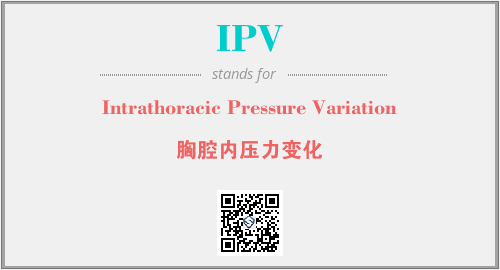 上述内容是“Intrathoracic Pressure Variation”作为“IPV”的缩写,解释为“胸腔内压力变化”时的信息,以及英文缩略词IPV所代表的英文单词,其对应的中文拼音、详细解释以及在英文中的流行度和相关分类、应用领域及应用示例等。