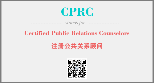 英文缩略词“CPRC”经常作为“Certified Public Relations Counselors”的英文缩写来使用,中文表示:“注册公共关系顾问”。本文将详细介绍英文缩写词CPRC所代表英文单词,其对应的中文拼音、详细解释以及在英语中的流行度。此外,还有关于缩略词CPRC的分类、应用领域及相关应用示例等。
