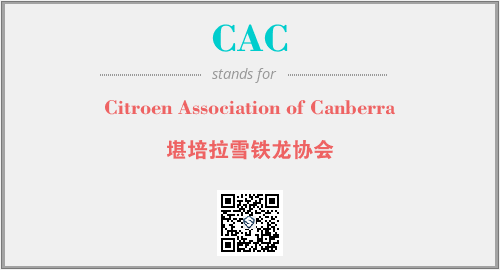 英文缩略词“CAC”经常作为“Citroen Association of Canberra”的英文缩写来使用,中文表示:“堪培拉雪铁龙协会”。本文将详细介绍英文缩写词CAC所代表英文单词,其对应的中文拼音、详细解释以及在英语中的流行度。此外,还有关于缩略词CAC的分类、应用领域及相关应用示例等。