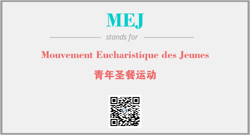 上述内容是“Mouvement Eucharistique des Jeunes”作为“MEJ”的缩写,解释为“青年圣餐运动”时的信息,以及英文缩略词MEJ所代表的英文单词,其对应的中文拼音、详细解释以及在英文中的流行度和相关分类、应用领域及应用示例等。