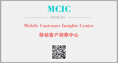 英文缩略词“MCIC”经常作为“Mobile Customer Insights Center”的英文缩写来使用,中文表示:“移动客户洞察中心”。本文将详细介绍英文缩写词MCIC所代表英文单词,其对应的中文拼音、详细解释以及在英语中的流行度。此外,还有关于缩略词MCIC的分类、应用领域及相关应用示例等。