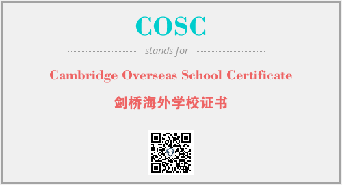 英文缩略词“COSC”经常作为“Cambridge Overseas School Certificate”的英文缩写来使用,中文表示:“剑桥海外学校证书”。本文将详细介绍英文缩写词COSC所代表英文单词,其对应的中文拼音、详细解释以及在英语中的流行度。此外,还有关于缩略词COSC的分类、应用领域及相关应用示例等。