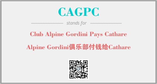 上述内容是“Club Alpine Gordini Pays Cathare”作为“CAGPC”的缩写,解释为“Alpine Gordini俱乐部付钱给Cathare”时的信息,以及英文缩略词CAGPC所代表的英文单词,其对应的中文拼音、详细解释以及在英文中的流行度和相关分类、应用领域及应用示例等。