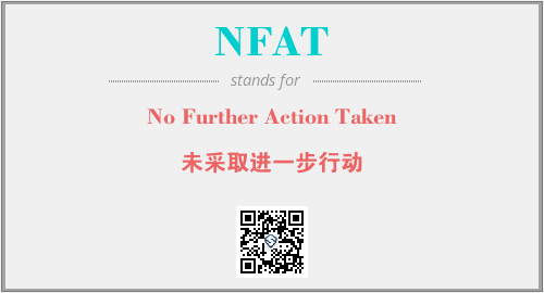 以上为No Further Action Taken英文缩略词NFAT的中文解释,以及该英文缩写在英语的流行度、分类和应用领域方面的信息。