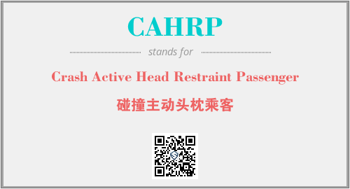 上述内容是“Crash Active Head Restraint Passenger”作为“CAHRP”的缩写,解释为“碰撞主动头枕乘客”时的信息,以及英文缩略词CAHRP所代表的英文单词,其对应的中文拼音、详细解释以及在英文中的流行度和相关分类、应用领域及应用示例等。