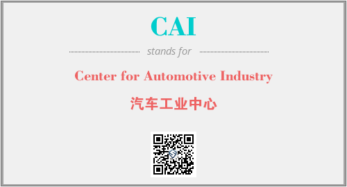 上述内容是“Center for Automotive Industry”作为“CAI”的缩写,解释为“汽车工业中心”时的信息,以及英文缩略词CAI所代表的英文单词,其对应的中文拼音、详细解释以及在英文中的流行度和相关分类、应用领域及应用示例等。