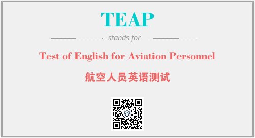 上述内容是“Test of English for Aviation Personnel”作为“TEAP”的缩写,解释为“航空人员英语测试”时的信息,以及英文缩略词TEAP所代表的英文单词,其对应的中文拼音、详细解释以及在英文中的流行度和相关分类、应用领域及应用示例等。