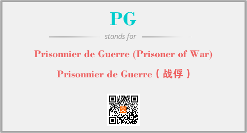 上述内容是“Prisonnier de Guerre (Prisoner of War)”作为“PG”的缩写,解释为“Prisonnier de Guerre(战俘)”时的信息,以及英文缩略词PG所代表的英文单词,其对应的中文拼音、详细解释以及在英文中的流行度和相关分类、应用领域及应用示例等。