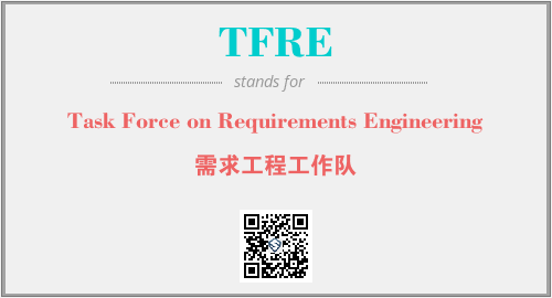 上述内容是“Task Force on Requirements Engineering”作为“TFRE”的缩写,解释为“需求工程工作队”时的信息,以及英文缩略词TFRE所代表的英文单词,其对应的中文拼音、详细解释以及在英文中的流行度和相关分类、应用领域及应用示例等。