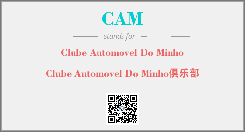 英文缩略词“CAM”经常作为“Clube Automovel Do Minho”的英文缩写来使用,中文表示:“Clube Automovel Do Minho俱乐部”。本文将详细介绍英文缩写词CAM所代表英文单词,其对应的中文拼音、详细解释以及在英语中的流行度。此外,还有关于缩略词CAM的分类、应用领域及相关应用示例等。