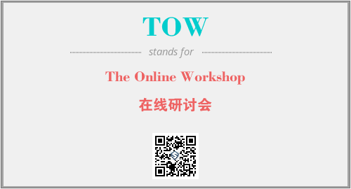 英文缩略词“TOW”经常作为“The Online Workshop”的英文缩写来使用,中文表示:“在线研讨会”。本文将详细介绍英文缩写词TOW所代表英文单词,其对应的中文拼音、详细解释以及在英语中的流行度。此外,还有关于缩略词TOW的分类、应用领域及相关应用示例等。