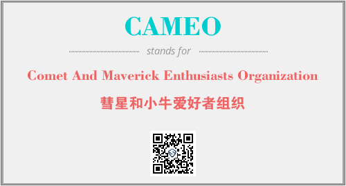 上述内容是“Comet And Maverick Enthusiasts Organization”作为“CAMEO”的缩写,解释为“彗星和小牛爱好者组织”时的信息,以及英文缩略词CAMEO所代表的英文单词,其对应的中文拼音、详细解释以及在英文中的流行度和相关分类、应用领域及应用示例等。
