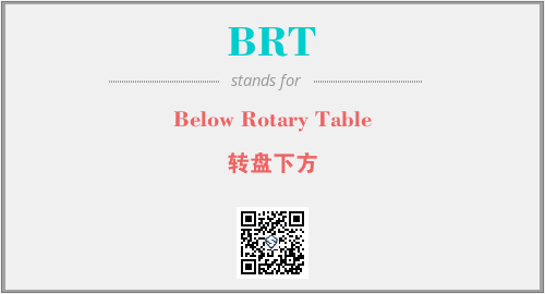 上述内容是“Below Rotary Table”作为“BRT”的缩写,解释为“转盘下方”时的信息,以及英文缩略词BRT所代表的英文单词,其对应的中文拼音、详细解释以及在英文中的流行度和相关分类、应用领域及应用示例等。