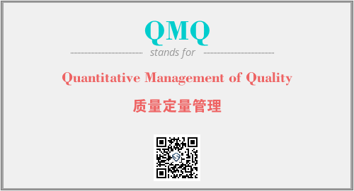 英文缩略词“QMQ”经常作为“Quantitative Management of Quality”的英文缩写来使用,中文表示:“质量定量管理”。本文将详细介绍英文缩写词QMQ所代表英文单词,其对应的中文拼音、详细解释以及在英语中的流行度。此外,还有关于缩略词QMQ的分类、应用领域及相关应用示例等。