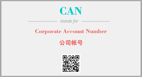 上述内容是“Corporate Account Number”作为“CAN”的缩写,解释为“公司帐号”时的信息,以及英文缩略词CAN所代表的英文单词,其对应的中文拼音、详细解释以及在英文中的流行度和相关分类、应用领域及应用示例等。