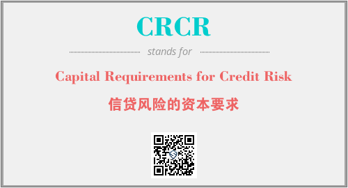 上述内容是“Capital Requirements for Credit Risk”作为“CRCR”的缩写,解释为“信贷风险的资本要求”时的信息,以及英文缩略词CRCR所代表的英文单词,其对应的中文拼音、详细解释以及在英文中的流行度和相关分类、应用领域及应用示例等。