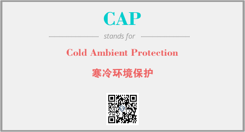 上述内容是“Cold Ambient Protection”作为“CAP”的缩写,解释为“寒冷环境保护”时的信息,以及英文缩略词CAP所代表的英文单词,其对应的中文拼音、详细解释以及在英文中的流行度和相关分类、应用领域及应用示例等。