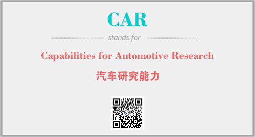 上述内容是“Capabilities for Automotive Research”作为“CAR”的缩写,解释为“汽车研究能力”时的信息,以及英文缩略词CAR所代表的英文单词,其对应的中文拼音、详细解释以及在英文中的流行度和相关分类、应用领域及应用示例等。