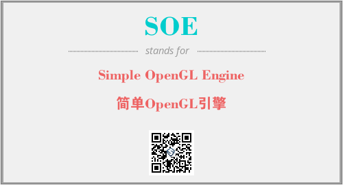 上述内容是“Simple OpenGL Engine”作为“SOE”的缩写,解释为“简单OpenGL引擎”时的信息,以及英文缩略词SOE所代表的英文单词,其对应的中文拼音、详细解释以及在英文中的流行度和相关分类、应用领域及应用示例等。