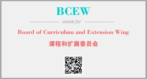 上述内容是“Board of Curriculum and Extension Wing”作为“BCEW”的缩写,解释为“课程和扩展委员会”时的信息,以及英文缩略词BCEW所代表的英文单词,其对应的中文拼音、详细解释以及在英文中的流行度和相关分类、应用领域及应用示例等。