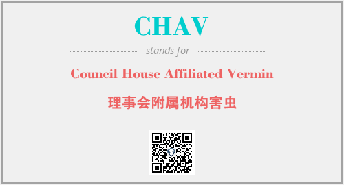 以上为Council House Affiliated Vermin英文缩略词CHAV的中文解释,以及该英文缩写在英语的流行度、分类和应用领域方面的信息。