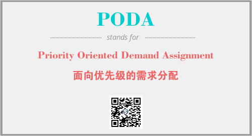 上述内容是“Priority Oriented Demand Assignment”作为“PODA”的缩写,解释为“面向优先级的需求分配”时的信息,以及英文缩略词PODA所代表的英文单词,其对应的中文拼音、详细解释以及在英文中的流行度和相关分类、应用领域及应用示例等。