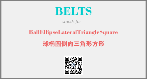 上述内容是“BallEllipseLateralTriangleSquare”作为“BELTS”的缩写,解释为“球椭圆侧向三角形方形”时的信息,以及英文缩略词BELTS所代表的英文单词,其对应的中文拼音、详细解释以及在英文中的流行度和相关分类、应用领域及应用示例等。