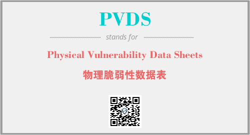 上述内容是“Physical Vulnerability Data Sheets”作为“PVDS”的缩写,解释为“物理脆弱性数据表”时的信息,以及英文缩略词PVDS所代表的英文单词,其对应的中文拼音、详细解释以及在英文中的流行度和相关分类、应用领域及应用示例等。