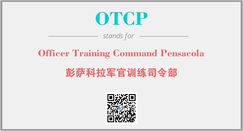 上述内容是“Officer Training Command Pensacola”作为“OTCP”的缩写,解释为“彭萨科拉军官训练司令部”时的信息,以及英文缩略词OTCP所代表的英文单词,其对应的中文拼音、详细解释以及在英文中的流行度和相关分类、应用领域及应用示例等。