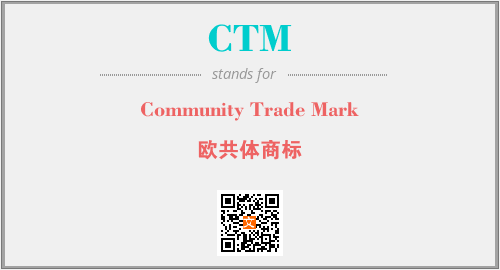 英文缩略词“CTM”经常作为“Community Trade Mark”的英文缩写来使用,中文表示:“欧共体商标”。本文将详细介绍英文缩写词CTM所代表英文单词,其对应的中文拼音、详细解释以及在英语中的流行度。此外,还有关于缩略词CTM的分类、应用领域及相关应用示例等。