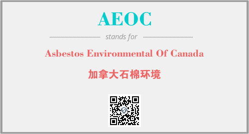 英文缩略词“AEOC”经常作为“Asbestos Environmental Of Canada”的英文缩写来使用,中文表示:“加拿大石棉环境”。本文将详细介绍英文缩写词AEOC所代表英文单词,其对应的中文拼音、详细解释以及在英语中的流行度。此外,还有关于缩略词AEOC的分类、应用领域及相关应用示例等。