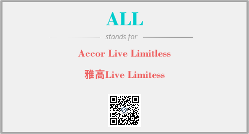 英文缩略词“ALL”经常作为“Accor Live Limitless”的英文缩写来使用,中文表示:“雅高Live Limitess”。本文将详细介绍英文缩写词ALL所代表英文单词,其对应的中文拼音、详细解释以及在英语中的流行度。此外,还有关于缩略词ALL的分类、应用领域及相关应用示例等。