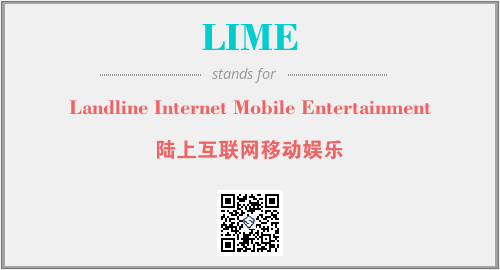 英文缩略词“LIME”经常作为“Landline Internet Mobile Entertainment”的英文缩写来使用,中文表示:“陆上互联网移动娱乐”。本文将详细介绍英文缩写词LIME所代表英文单词,其对应的中文拼音、详细解释以及在英语中的流行度。此外,还有关于缩略词LIME的分类、应用领域及相关应用示例等。