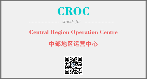 英文缩略词“CROC”经常作为“Central Region Operation Centre”的英文缩写来使用,中文表示:“中部地区运营中心”。本文将详细介绍英文缩写词CROC所代表英文单词,其对应的中文拼音、详细解释以及在英语中的流行度。此外,还有关于缩略词CROC的分类、应用领域及相关应用示例等。