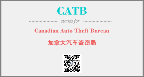 上述内容是“Canadian Auto Theft Bureau”作为“CATB”的缩写,解释为“加拿大汽车盗窃局”时的信息,以及英文缩略词CATB所代表的英文单词,其对应的中文拼音、详细解释以及在英文中的流行度和相关分类、应用领域及应用示例等。