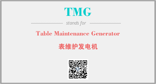 英文缩略词“TMG”经常作为“Table Maintenance Generator”的英文缩写来使用,中文表示:“表维护发电机”。本文将详细介绍英文缩写词TMG所代表英文单词,其对应的中文拼音、详细解释以及在英语中的流行度。此外,还有关于缩略词TMG的分类、应用领域及相关应用示例等。