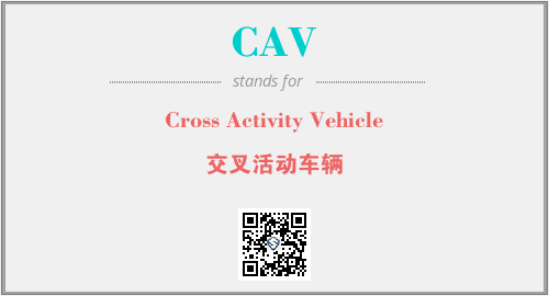 英文缩略词“CAV”经常作为“Cross Activity Vehicle”的英文缩写来使用,中文表示:“交叉活动车辆”。本文将详细介绍英文缩写词CAV所代表英文单词,其对应的中文拼音、详细解释以及在英语中的流行度。此外,还有关于缩略词CAV的分类、应用领域及相关应用示例等。