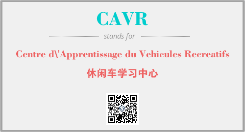 上述内容是“Centre d\'Apprentissage du Vehicules Recreatifs”作为“CAVR”的缩写,解释为“休闲车学习中心”时的信息,以及英文缩略词CAVR所代表的英文单词,其对应的中文拼音、详细解释以及在英文中的流行度和相关分类、应用领域及应用示例等。