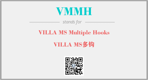 英文缩略词“VMMH”经常作为“VILLA MS Multiple Hooks”的英文缩写来使用,中文表示:“VILLA MS多钩”。本文将详细介绍英文缩写词VMMH所代表英文单词,其对应的中文拼音、详细解释以及在英语中的流行度。此外,还有关于缩略词VMMH的分类、应用领域及相关应用示例等。