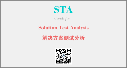 上述内容是“Solution Test Analysis”作为“STA”的缩写,解释为“解决方案测试分析”时的信息,以及英文缩略词STA所代表的英文单词,其对应的中文拼音、详细解释以及在英文中的流行度和相关分类、应用领域及应用示例等。