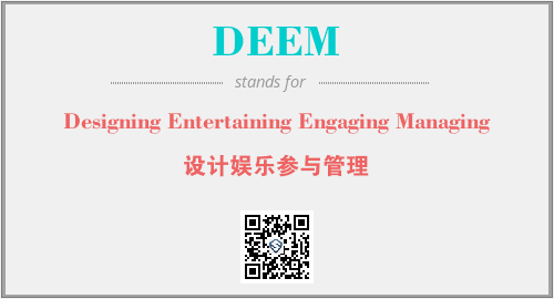 上述内容是“Designing Entertaining Engaging Managing”作为“DEEM”的缩写,解释为“设计娱乐参与管理”时的信息,以及英文缩略词DEEM所代表的英文单词,其对应的中文拼音、详细解释以及在英文中的流行度和相关分类、应用领域及应用示例等。